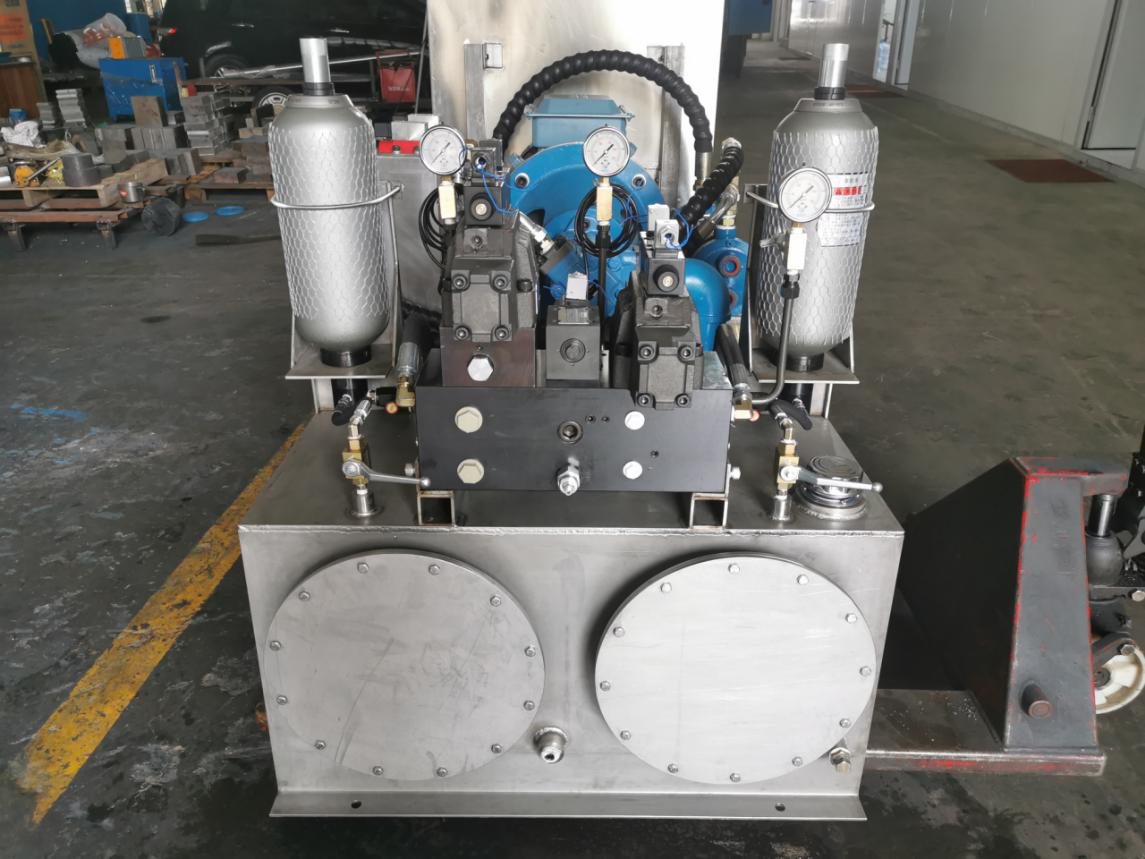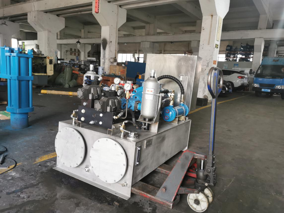 合作了12年的客户玖龙纸业,全球各地的分公司一直都有让我们供气缸、油缸及液压系统和泵等产品,主要生产及维修他们纸品机上用的。这次因急用,在国庆节前赶了一台防腐蚀性液压系统,这台液压系统主用于纸品挤渣机械。750L油箱采用304全不锈钢,电机采用的是ABB的,广东江门ABB公司我们也有供气动液压元件及治具等产品。电磁阀采用的是派克的。油温冷却、报警油温、油箱液位上/下限、报警装置、油液风冷等等配件,他们要求很是严格。不管再难,我们也可以搞定。就像去年年关做给格兰仕那两台大型制冷设备上用的液压系统一样一样的。