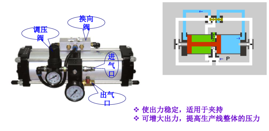 只要将增压缸的进气口通入压缩空气,即可从出口得到2~10倍入口压力;